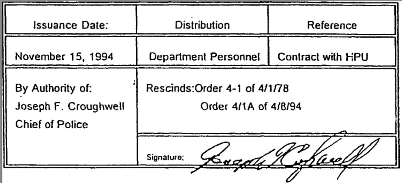 General Order 4-1, Effective Date: 12/01/94